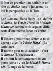 Il est un principe fondamental dans le judaïsme, pilier de la foi en D. : Le « Yi’houd Hachèm » – L’UNICITÉ de D. De ce principe, découle entre autre, que D. est à l’Origine de tout, le Créateur de tout. Qu’il dirige tout et qu’aucune force ne peut s’opposer à lui (Voir Da’ate Outvouna du Ram’hal chap. 34, 35 et 36). Il convient donc de rectifier une erreur fondamentale qui ressort du dialogue précédent. Le diable existe bien, et il n’est pas une illusion générée par l’absence de son contraire (‘Hass Véchalom).