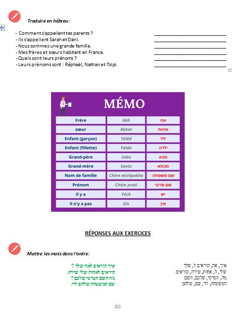 Pas à pas et à votre rythme, vous allez découvrir l’hébreu. Vous allez progresser rapidement car la méthode est structurée. Chaque mot est étudié et par la suite, employé dans des phrases.